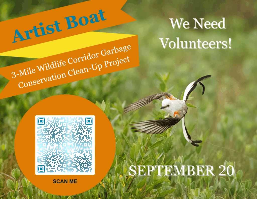 Join Artist Boat in a day of service at the 3-Mile Wildlife Corridor Garbage Conservation Clean-Up Project to celebrate National Estuaries Week. The 3-Mile Wildlife Corridor will start on Stewart Road between 8 Mile Road and 11 Mile Road on September 20 beginning at 7:30 a.m. Volunteers are needed and sign up is encouraged! Clean up is open to folks who are 16 years old and older. Please contact Juliane Swan at development.coordinator@artistboat.org for more information.